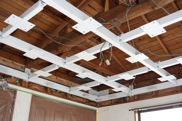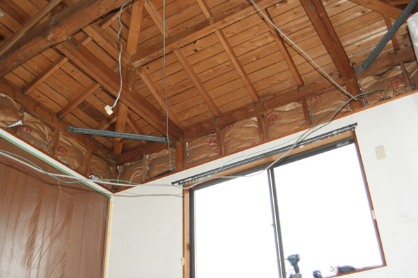 耐震補強工事を行う部屋の天井です。室内の広さは変わることなく、狭くなりません。